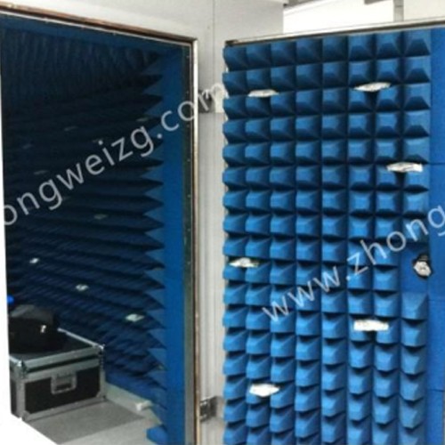 微波暗室根據(jù)電磁波在介質(zhì)中從低磁導(dǎo)向高磁導(dǎo)方向傳播的規(guī)律,利用高磁導(dǎo)率吸波材料引導(dǎo)電磁波,通過共振,大量吸收電磁波的輻射能量,再通過耦合把電磁波的能量轉(zhuǎn)變成熱能。當(dāng)電磁波入射到墻面、天棚、地面時(shí),絕大部分電磁波被吸收,而透射、反射極少。